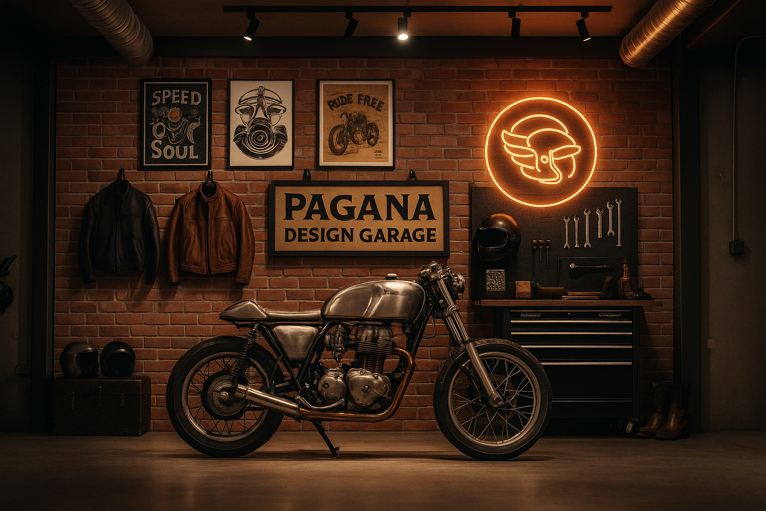 Pagana Design Garage steht für handgezeichnete Designs, echte Leidenschaft für Motorräder und den Spirit der 50er-Jahre Café-Racer-Ära.